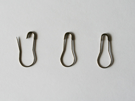 こちらはひょうたんの形をしています。 針も細めなので、 布を留めるだけでなく、 紙を留めたり、チャームをぶらさげたりと、 楽しい使い方ができます。
